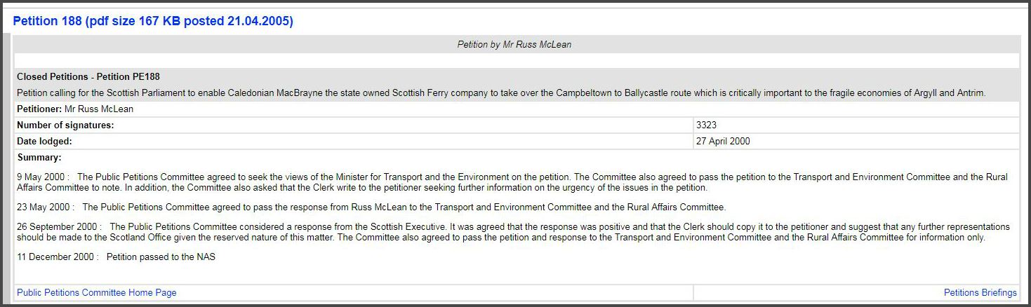 We will then ensure the Parliamentary Petitions Committee receive this new ferry route petition.